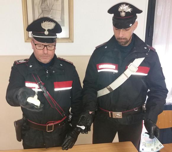 Prosegue da parte dei carabinieri della Compagnia di Ivrea l’attività di contrasto allo spaccio ed all’uso di sostanze stupefacenti tra i giovani del Canavese. I carabinieri della Stazione di Cuorgnè hanno arrestato in flagranza di reato per detenzione ai fini di spaccio di sostanze stupefacenti D.B.G., cuorgnatese di 48 anni già noto alle forze dell’ordine. Lunedì pomeriggio, a Cuorgnè, nel corso di un servizio finalizzato alla prevenzione e repressione del traffico di sostanze stupefacenti, i militari hanno controllato due giovani della zona, trovandoli in possesso di 3 grammi di hashish. Immediati accertamenti hanno consentito di risalire al fornitore della sostanza. È quindi scattata una perquisizione locale presso un bar di Valperga, dove i carabinieri hanno rinvenuto nella disponibilità del gestore, D.B.G., 56 grammi di hashish già suddivisi in 32 dosi, custodite in due scatoline occultate nel cassetto posto sotto il registratore di cassa nonché la somma di 295 euro in contanti ritenuta provento dell’illecita attività di spaccio della sostanza stupefacente. Dai primi accertamenti risulterebbe che l’hashish venisse ceduto al costo di 10 euro a dose e destinato verosimilmente ad una clientela piuttosto giovane. Sostanza stupefacente e denaro contante sono stati sottoposti a sequestro. Nel bar è stato rinvenuto e sequestrato anche vario materiale ritenuto di provenienza delittuosa, tra cui un machete, 18 paia di occhiali di marca, una borsa di marca e 8 bottiglie di profumi. Il 48enne è stato dichiarato in arresto per detenzione ai fini di spaccio di sostanze stupefacenti e, dopo le formalità di rito, su disposizione della Procura di Ivrea, è stato sottoposto agli arresti domiciliari. Nei suoi confronti è scattata anche una denuncia per ricettazione. Il Gip di Ivrea, che mercoledì ha convalidato l’arresto, ha disposto nei confronti dell’uomo l’applicazione della misura cautelare dell’obbligo di presentazione quotidiana ai carabinieri di Cuorgnè e dell’obbligo di dimora nel Comune di Cuorgnè.
