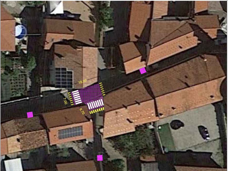 Alcune aree edificate si sono sviluppate lungo e intorno all’asse viario, lungo il quale sono presenti diversi accessi alle abitazioni private che si innestano direttamente sulla Provinciale. Nella fase di progettazione è stata prestata una particolare attenzione agli utenti deboli della strada, per migliorare la sicurezza dei percorsi attualmente fruibili. È stata quindi prevista una piattaforma rialzata, realizzata con la tecnica di stampa e resinatura “Street Print” in prossimità dell’incrocio tra la Provinciale 217 e il vicolo San Rocco. La piattaforma rallenta i veicoli in transito e comprende gli attraversamenti pedonali. La realizzazione della piattaforma in un centro abitato può preludere all’istituzione del limite di velocità di 30 Km orari. Il progetto esecutivo, in fase di predisposizione, non dovrebbe prevedere un incremento del costo stimato durante la redazione del preliminare.