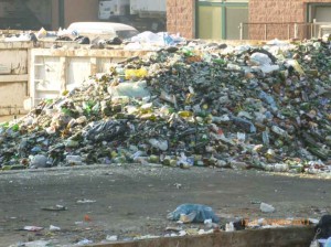 Vetro, plastica, lattine, carta…tutto ciò che dovrebbe essere “differenziato” e non, viene ammassato in container (e talvolta a terra) in quello che dovrebbe essere l’ecocentro.