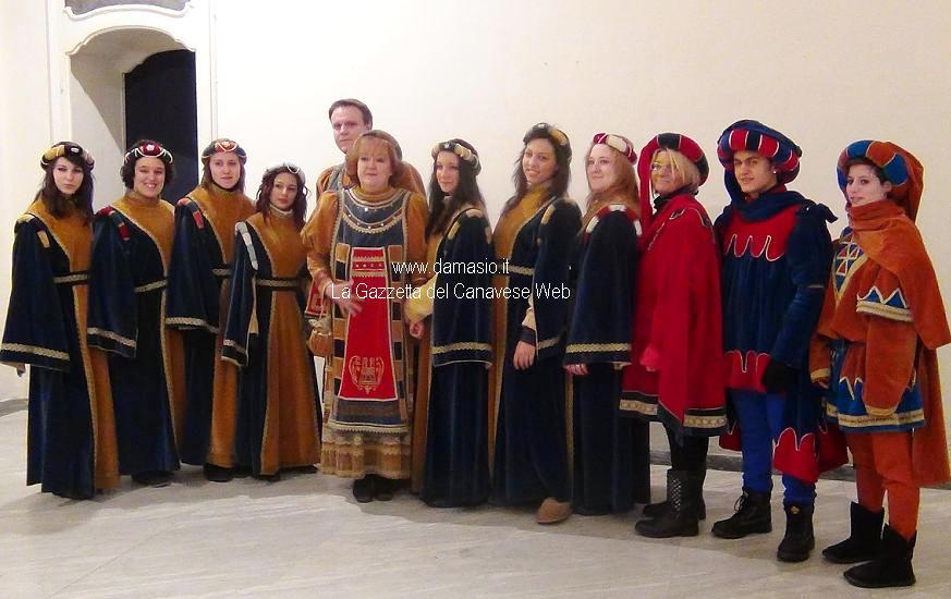 A salutare la Bela Pignatera ed il Primo Console molti gruppi ospiti: i conti di Orio, i Principini di Salassa, i Nufia cop di Valperga, il Conte Filippo e la Contessa Caterina con il Gruppo Storico di Agliè, il Gran Giardiniere e la Bela Cossatera da Brandizzo i Tajastrass di Favria, oltre agli Sbandieratori di San Damianio d’Asti.