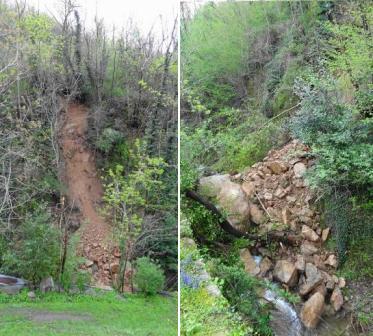 L’intero versante presenta vari punti sospetti di inizio frana: È stato segnalato il fenomeno anche alla