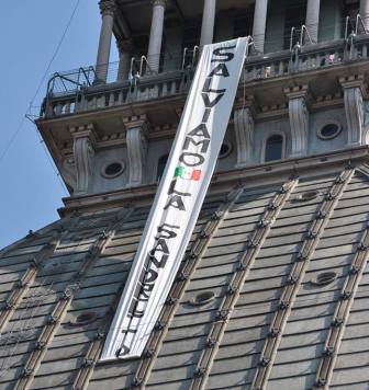 TORINO – Uno striscione con la scritta “Salviamo la Sandretto” è stato srotolato ieri mattina dalla Mole Antonelliana dai lavoratori della fabbrica Romi ex Sandretto con sede anche a Pont Canavese. Alla iniziativa hanno partecipato un centinaio di lavoratori in difesa dell’azienda e dei 150 posti di lavoro. Tra meno di due settimane, il 24 luglio, scade la cassa integrazione straordinaria.