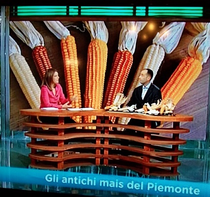 Ospite di Sveva Sagramola negli studi romani della Rai il Presidente dell’ Associazione Antichi Mais Piemontesi, il sangiorgese Loris Caretto (che produce antichi mais appunto, ma anche vini DOCG e DOC del Canavese) che ha raccontato in diretta il ruolo dell’Associazione nata nel 2004 per la conservazione e valorizzazione delle antiche varietà locali piemontesi. Loris ha spiegato come l’Associazione, in collaborazione con Crab, Regione Piemonte ed Università di Torino, abbia svolto importanti azioni per la tutela e la salvaguardia di queste 7 varietà presenti in Piemonte (Mais nostrano dell’isola, Pignoletto rosso, Pignoletto giallo, Ottofile bianco, Ottofile rosso, Ottofile giallo, Ostenga). «Questi mais