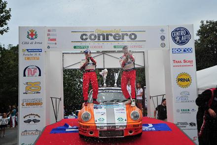 IVREA – Un Memorial Conrero dal doppio volto per Nicholas Montini e Roberto Belfiore che vincono la gara eporediese grazie ad una prima tappa di sette speciali, in cui si sono aggiudicati sei delle sette prove speciali in programma, lasciando il più veloce degli avversari, il sardo Salvatore Biosa, affiancato da Claudio Mele su Porsche 911 SC ad oltre due minuti. Con un simile vantaggio il giovanissimo pilota bresciano nella seconda tappa ha badato a