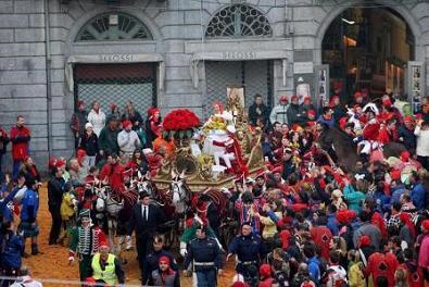 – ore 14.00 Inizio della Marcia del Corteo Storico e della Battaglia delle arance piazza di Città, via Arduino, piazza Gioberti, via Guarnotta, Ponte Vecchio, via Gozzano, piazza Lamarmora, corso Nigra, corso Cavour, corso Re Umberto, corso Gallo, corso Botta, piazza Balla, corso Massimo d’Azeglio, via IV° Reggimento Alpini (Ufficio del Turismo), via Cascinette, corso Massimo d’Azeglio, piazza Balla, via Palestro, piazza di Città.