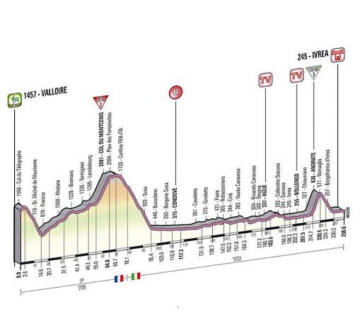 La tappa Valloire-Ivrea non è tra le più difficili del Giro anche se è in grado di fare selezione tra i corridori in gara.