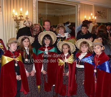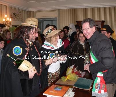 A riceverli in comune ed a consegnare loro le chiavi il Sindaco Sergio Pilotto, i personaggi del 2012 Sabina Sandrini e Riccardo Benedetto, ed una folta rappresentanza di Carnevali della zona: il gruppo storico di Agliè ed i personaggi dei carnevali di San Sebastiano Po, Candia, Orio Saluggia e del Carnevale di Bertolla di Torino.