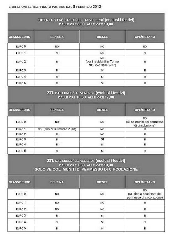 TORINO – Il provvedimento di limitazione alla circolazione dei veicoli con omologazione Euro3 diesel nella Ztl Centrale sarà in vigore fino a venerdì 8 febbraio. In tal modo la Giunta intende tenere conto dell’orientamento espresso dal Consiglio Comunale che ha richiesto la sospensione del provvedimento, senza tuttavia rinunciare a una sperimentazione, sia pure temporalmente contenuta, che consenta all’Amministrazione di acquisire elementi di valutazione.