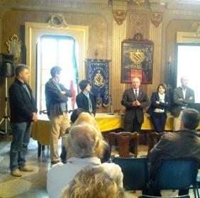 E poi ad arricchire il libro finestre di approfondimento e curiosità su eventi e personaggi. Infine la genesi della copertina capace di coniugare antico e moderno, con le bandiere che innalzano il logo passato e quello presente della Città, unitamente alla bandiera italiana, a ricordare le celebrazione dei 150 anni. Un libro per tutti, con la parte introduttiva scritta in più lingue, per permetterne a tutti l’accesso. E tra le novità Massimo Marchesiello, ha annunciato che Rivarolo Canavese sarà il 23 maggio 2014 sede di tappa del Giro d’Italia. «Un omaggio alla Città che come Commissione Straordinaria, abbiamo fortemente voluto, un’ottima vetrina.»