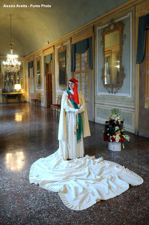 «Ci siamo sposati nella chiesa di San Lorenzo a Loranzè Alto – ha aggiunto Ileana – e abbiamo organizzato il ricevimento proprio qui al Castello. È un cerchio che si chiude, ed è oltremodo emozionante tornare qui, questa mattina, vestita di bianco. Sono molto legata a Ivrea, al Canavese; la considero la mia oasi di pace, quando scappo dalla grande città, per venire a trovare i miei suoceri. Sono stati loro a trasmettermi la passione del Carnevale. Delle emozioni raccontate da mia suocera c’è in primo luogo il calore riscontrato dalla gente. Sentimenti che ancor oggi ricorda con estrema gioia, ed è sempre un piacere sentire i suoi racconti. E poi gli album fotografici, i ritagli di giornale, di quella che per lei è stata un’esperienza bellissima, nella contentezza che anch’io la possa vivere, e che con me la possa rivivere anche lei. Allo stesso modo, mio suocero è stato uno splendido generale, pienamente calato nella parte.» Totalmente inaspettata la proposta della Fondazione nel chiederle di essere la Vezzosa Mugnaia 2013. «Una sorpresa grandissima – ha continuato – Il primo approccio gli organizzatori lo hanno avuto con i miei suoceri. Era il 2 di gennaio, quando sono stati contattati, e mi hanno dato la notizia. Ho incominciato a pensarci, e dopo averne parlato in famiglia, ho dato la mia disponibilità. Tutto è successo molto velocemente, ma è un’avventura, e come tale credo vada vissuta con tutto quello che mi sta portando.»
